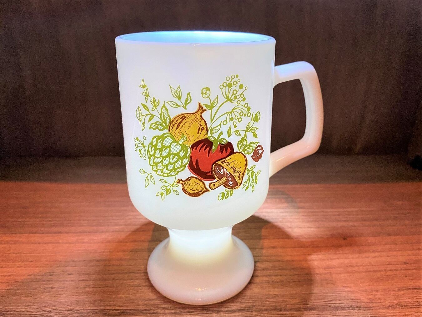 1970年代 フェデラルグラス製のミルクグラス フッテッドマグカップです。