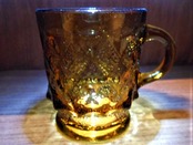 ミルクガラスで有名なファイヤーキング(アンカーホッキング)製のマグカップです。いくつかのデザインパターンの中のキンバリーというモデルとなります。ミルクガラスをベースに色付けしたキンバリーが一般的ですが、本品は珍しい茶色の透明ガラスのキンバリーとなります。恐らくミルクガラスのキンバリーと同じ1970年代の製品だと思います。