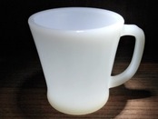 古くは1940年代 - 1970年代まで大きくデザインを変えずにファイヤーキング社により作り続けられたDハンドルマグカップのホワイトです。ミルクガラスの代表会社と言えるほどのファイヤーキング製品の中でも特にDハンドルは人気の商品となります。