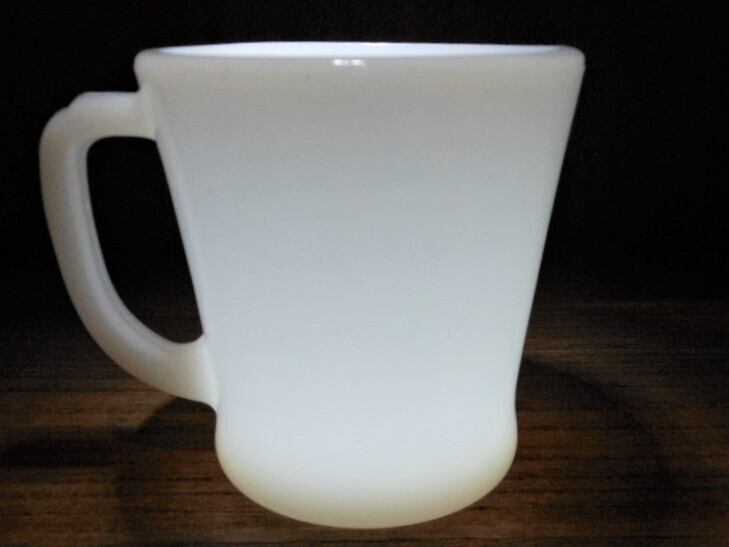 古くは1940年代 - 1970年代まで大きくデザインを変えずにファイヤーキング社により作り続けられたDハンドルマグカップのホワイトです。ミルクガラスの代表会社と言えるほどのファイヤーキング製品の中でも特にDハンドルは人気の商品となります。