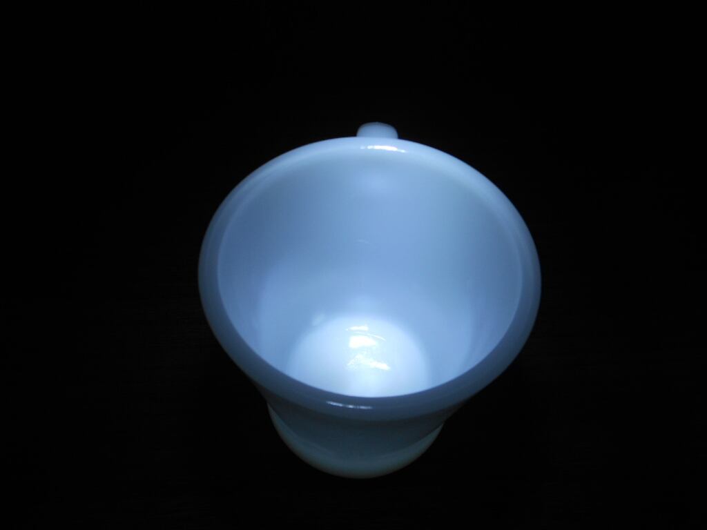 古くは1940年代 - 1970年代まで大きくデザインを変えずにファイヤーキング社により作り続けられたDハンドルマグカップのホワイトです。ミルクガラスの代表会社と言えるほどのファイヤーキング製品の中でも特にDハンドルは人気の商品となります。
