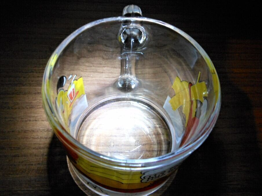 1978年にガーフィールドとコラボした、マクドナルドのアドバタイジングカップです。ファイヤーキングで有名なアンカーホッキング社によって生産された商品です。アメリカから運ばれたそのままの状態で写真撮影していますので多少汚れが映っていますが、簡単に落ちる汚れだと思います。
