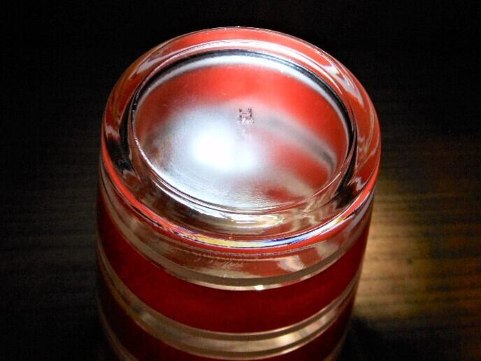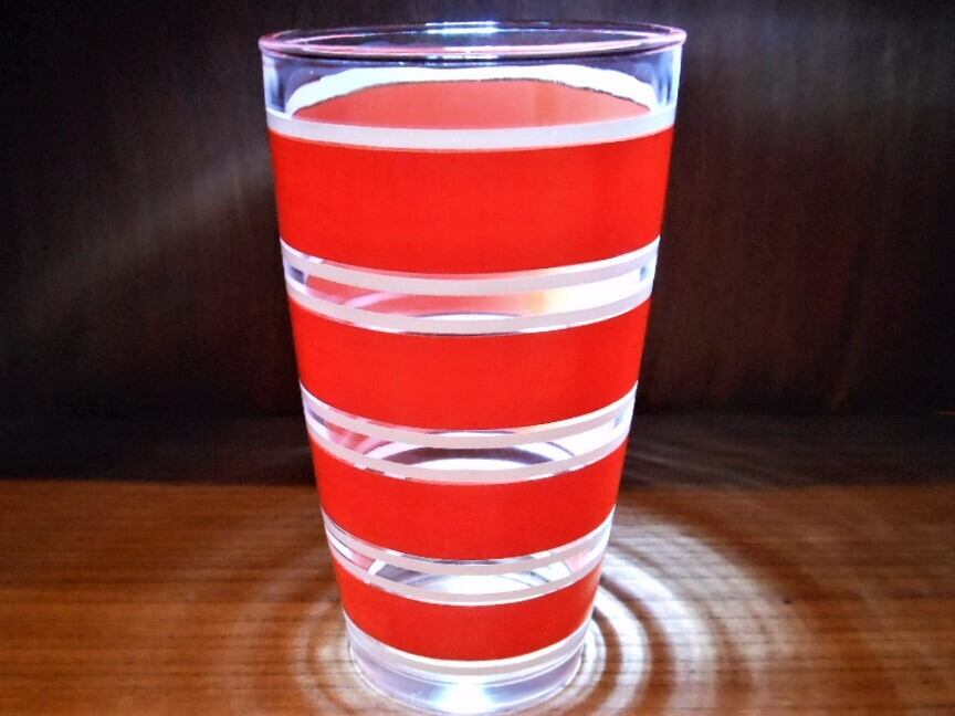 1950年代 ヘーゼルアトラス社製の 大型タンブラーグラスです。この会社からは似たタンブラーで、ストライプラインのミルクガラスタンブラーが有名ですが、このタイプのタンブラーはとてもレア商品だと思います。高さ約17㎝ / 開口径 約9㎝ の商品となります。
