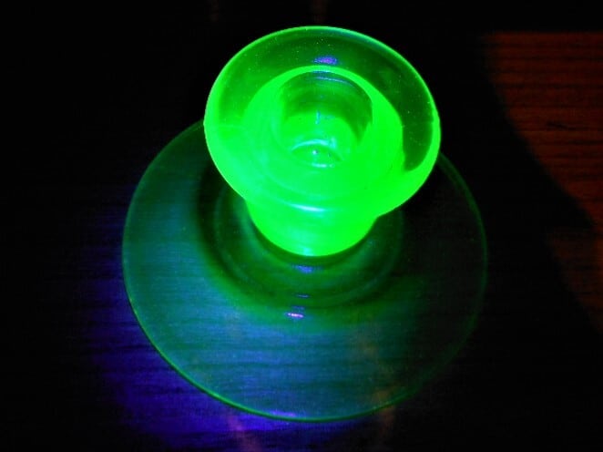 ガラスの緑色の着色の為に僅かにウランが混ぜられたガラスを” ウランガラス ”と呼びます。アメリカでは色がワセリンに似ている事から、これを ” ヴァセリングラス ” と呼んでいます。