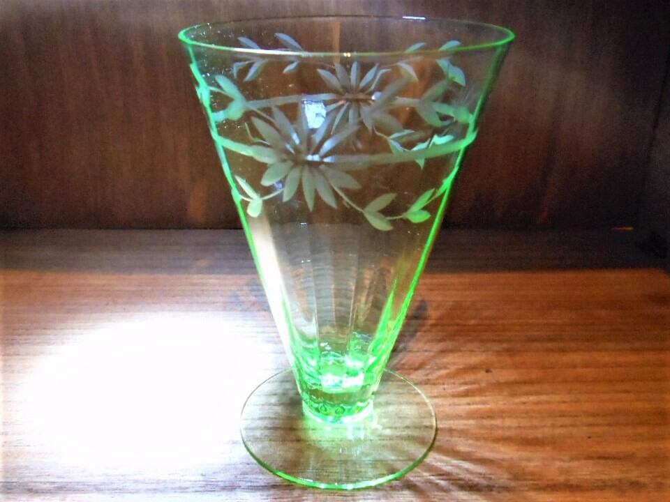 57-3: ウランガラス -- ティフィンフランシスカン社 --- ピルスナーグラス