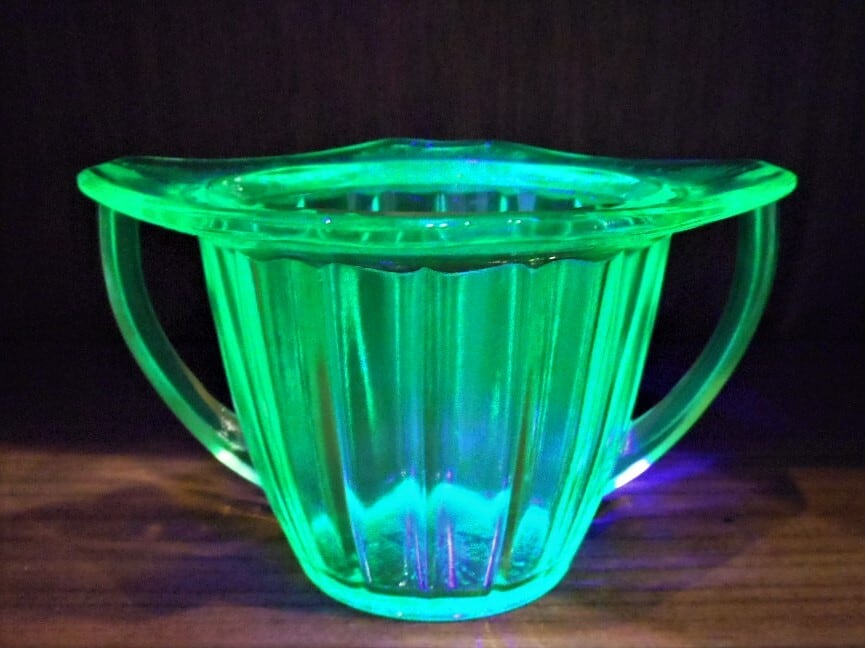 ガラスの緑色の着色の為に僅かにウランが混ぜられたガラスを” ウランガラス ”と呼びます。アメリカでは色がワセリンに似ている事から、これを ” ヴァセリングラス ” と呼んでいます。