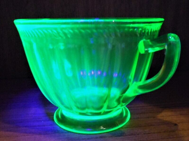 ガラスの着色の為に僅かにウランが混ぜられたガラスを” ウランガラス ”と呼びます。アメリカでは色がワセリンに似ている事から、これを ” ヴァセリングラス ” と呼んでいます。