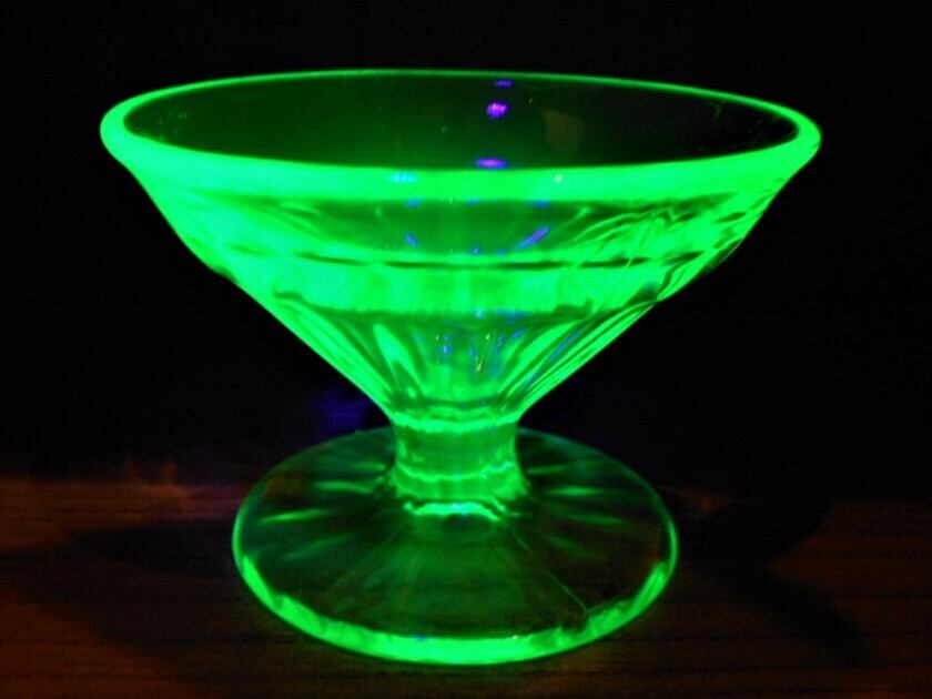 ガラスの緑色の着色の為に僅かにウランが混ぜられたガラスを” ウランガラス ”と呼びます。アメリカでは色がワセリンに似ている事から、これを ” ヴァセリングラス ” と呼んでいます。