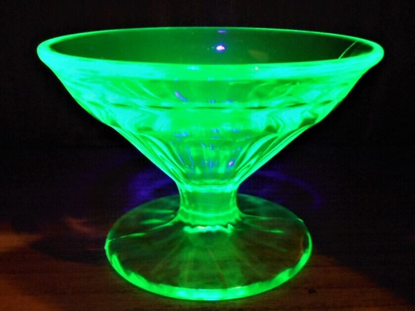 ガラスの緑色の着色の為に僅かにウランが混ぜられたガラスを” ウランガラス ”と呼びます。アメリカでは色がワセリンに似ている事から、これを ” ヴァセリングラス ” と呼んでいます。