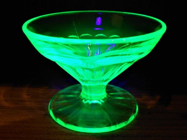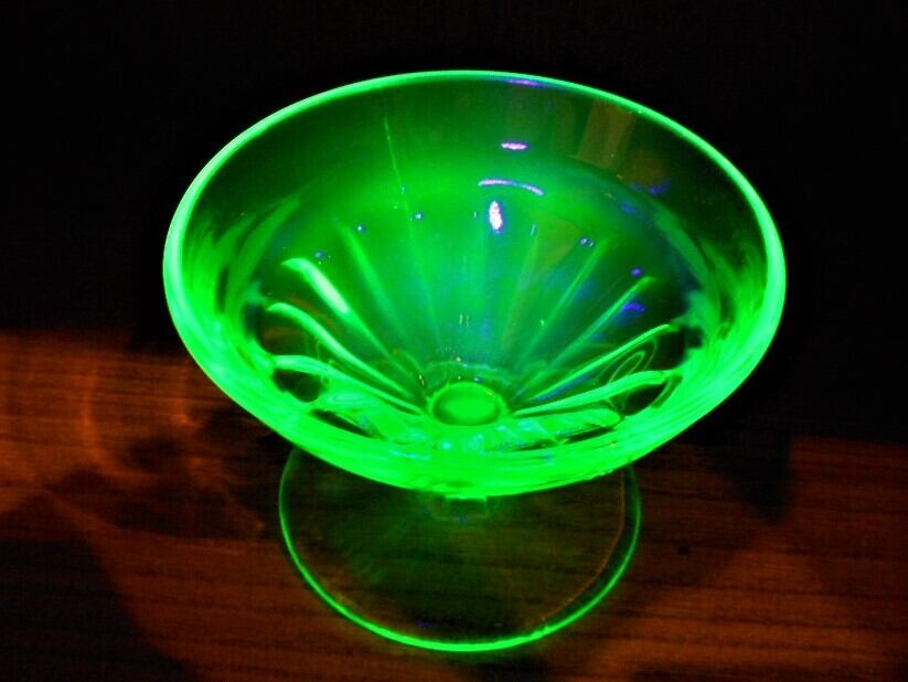 ガラスの緑色の着色の為に僅かにウランが混ぜられたガラスを” ウランガラス ”と呼びます。アメリカでは色がワセリンに似ている事から、これを ” ヴァセリングラス ” と呼んでいます。