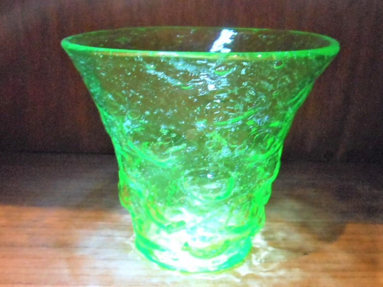 ガラスの着色の為に僅かにウランが混ぜられたガラスを” ウランガラス ”と呼びます。アメリカでは色がワセリンに似ている事から、これを ” ヴァセリングラス ” と呼んでいます。