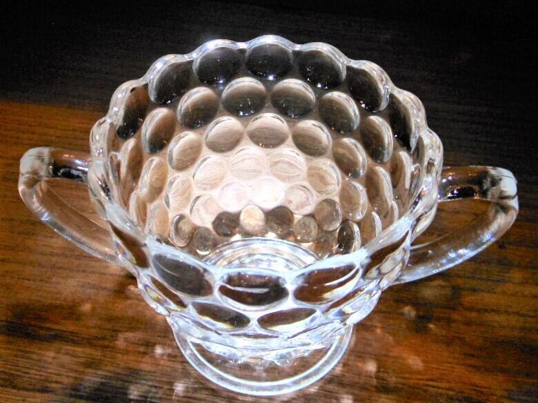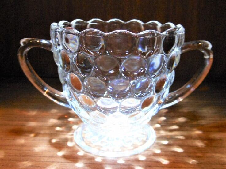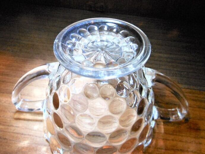 102-1: クリアガラス -- アンカーホッキング社 --- シュガーポット(高さ 8㎝ / 幅8㎝)