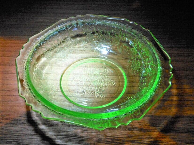 111-3: ウランガラス -- ヘーゼルアトラス社 --- ベリーボウル (鍔部外 - 外 12.5㎝)