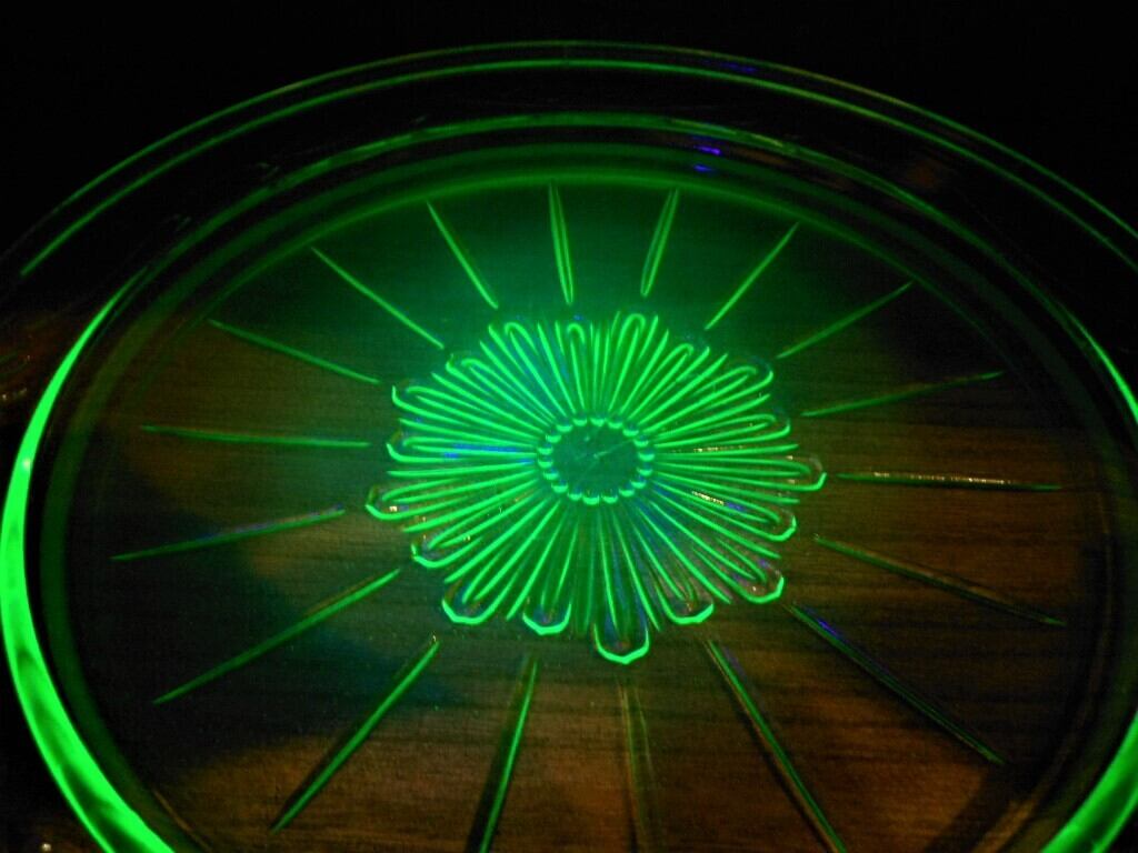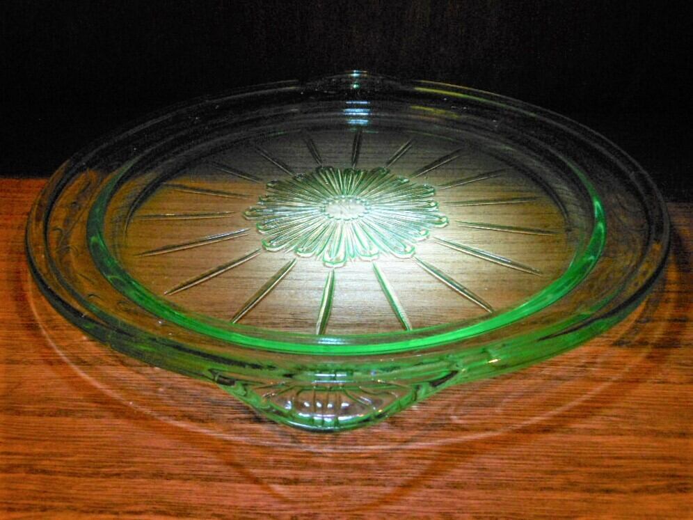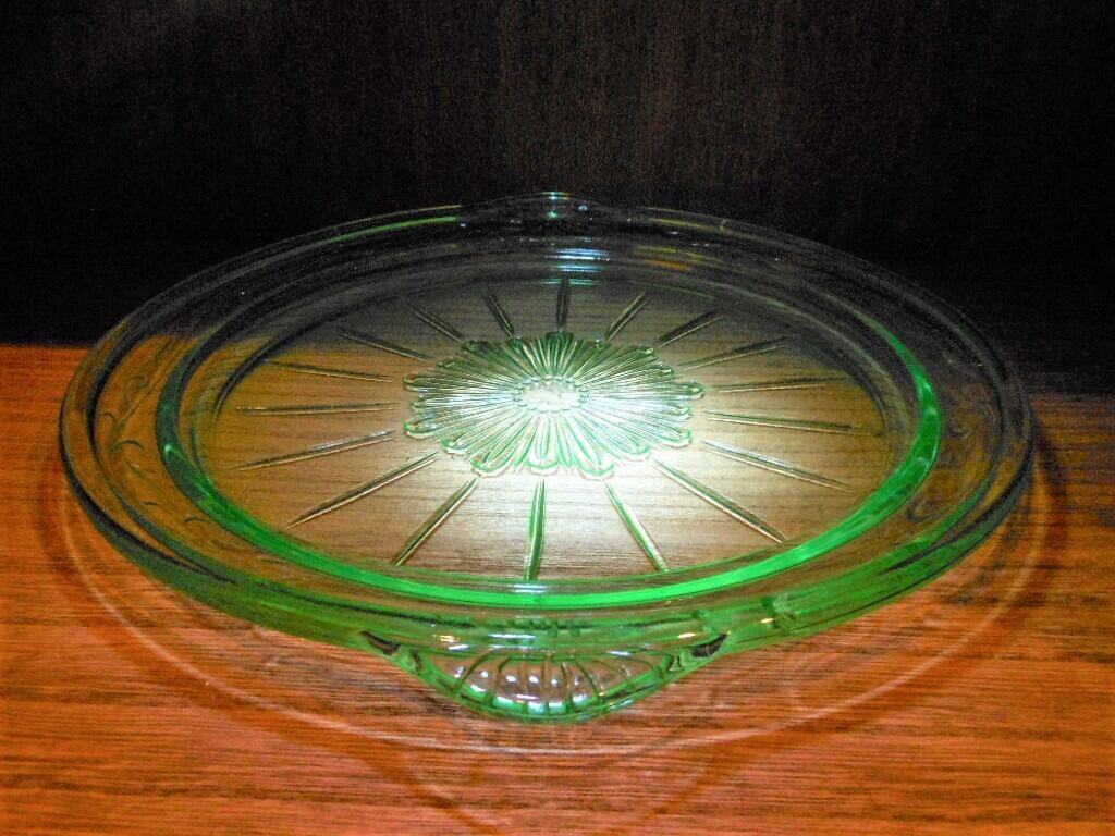 112-1: ウランガラス -- USガラス社 --- ケーキディッシュ (24㎝)