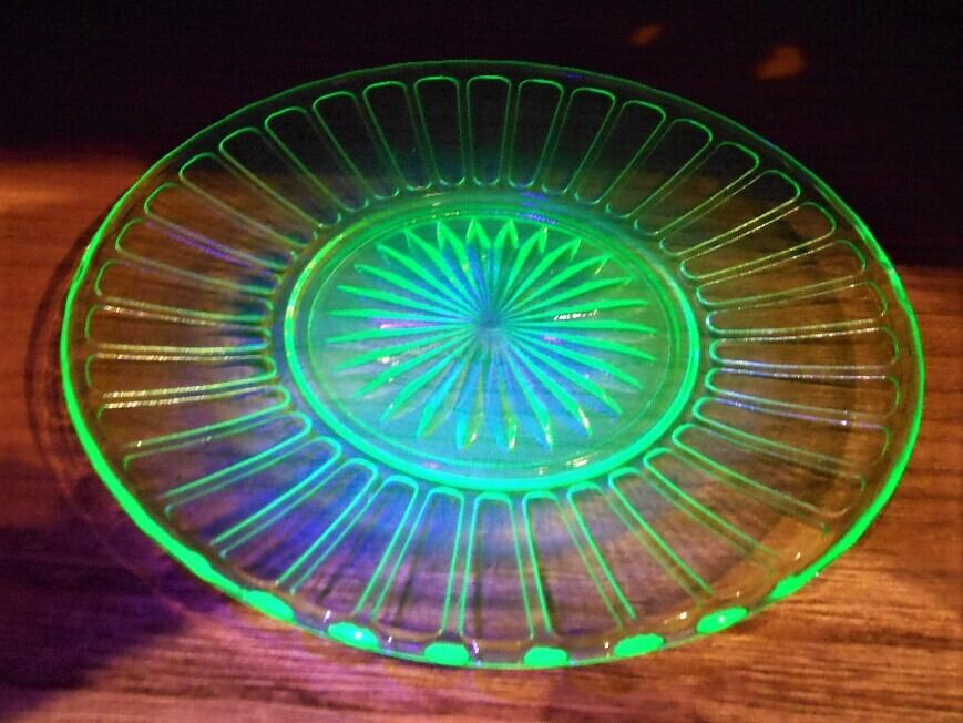 118-2: ケーキプレート(15.5㎝)-- ヘーゼルアトラス社 --- ウランガラス