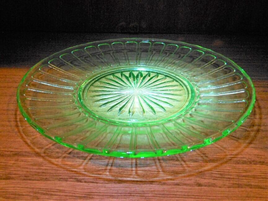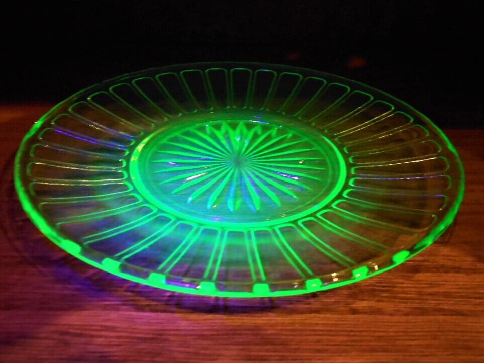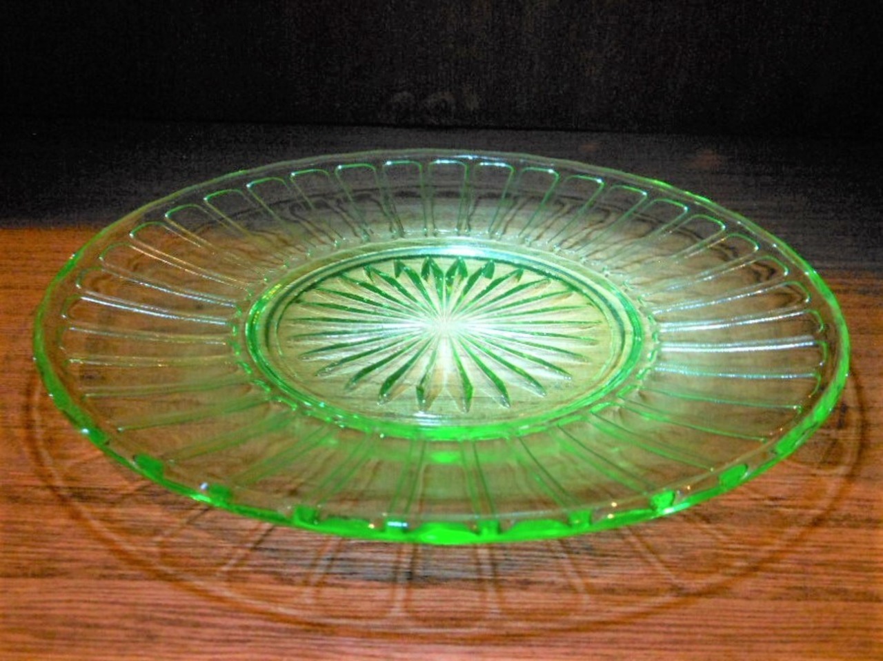 118-3: ケーキプレート(15.5㎝)-- ヘーゼルアトラス社 --- ウランガラス