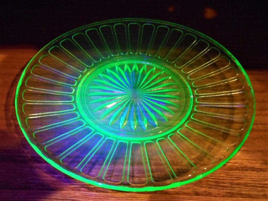 118-4: ケーキプレート(15.5㎝)-- ヘーゼルアトラス社 --- ウランガラス