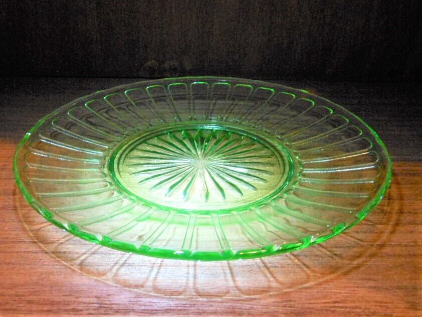 118-5: ケーキプレート(15.5㎝)-- ヘーゼルアトラス社 --- ウランガラス