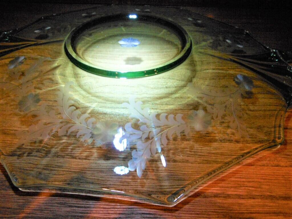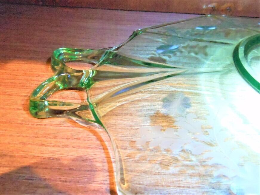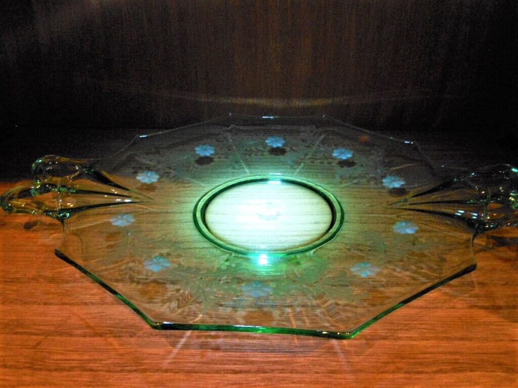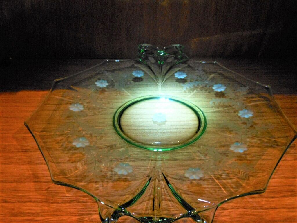 122-1: ケーキディッシュ(24㎝)-- メーカー不明 --- ウランガラス