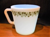 通常、オールドパイレックスと呼んでいる様です。可愛らしい、緑色の小花のデザインは、その後、コレール食器が作られる様になっても使われ続けます。