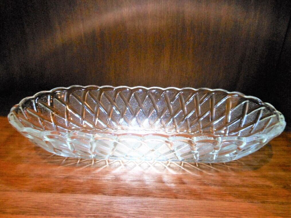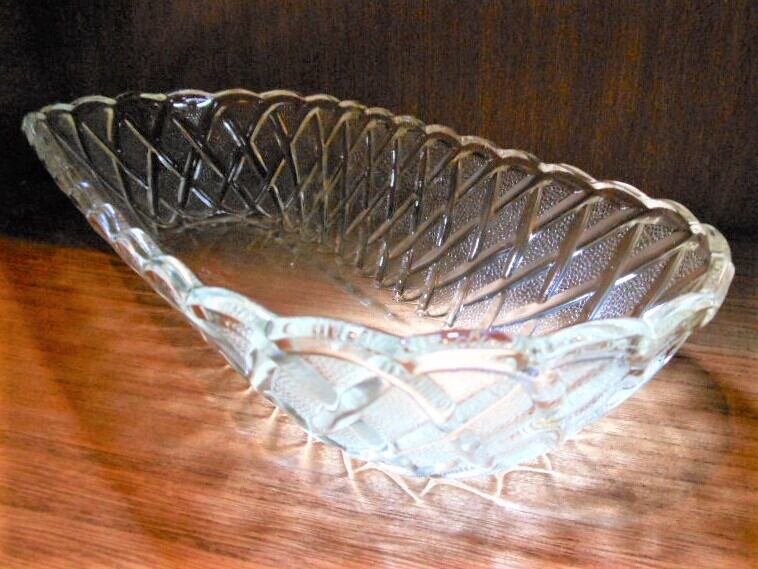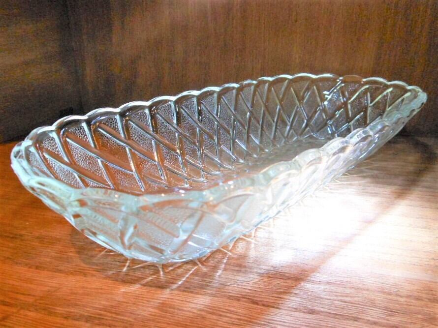 1940年代後半 - 1960年代 にインディアナグラス社によって生産された、オードブルディッシュです。モデル名を ” プレッツェル クリア ” と言います。プレッツェルを型取った様なデザインが特徴的です。